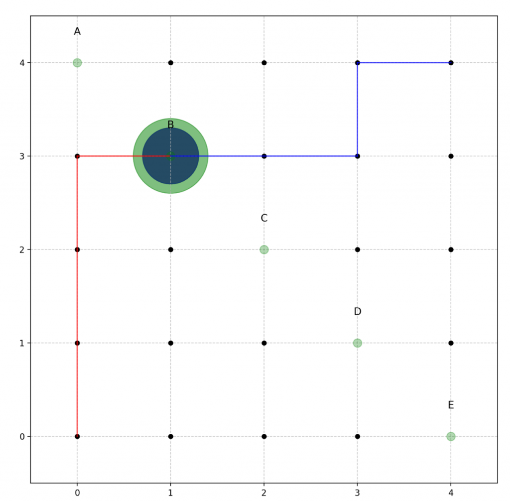 Probability expansion. Calculate the probability of meeting at each location and then sum the total. Expand example to N: